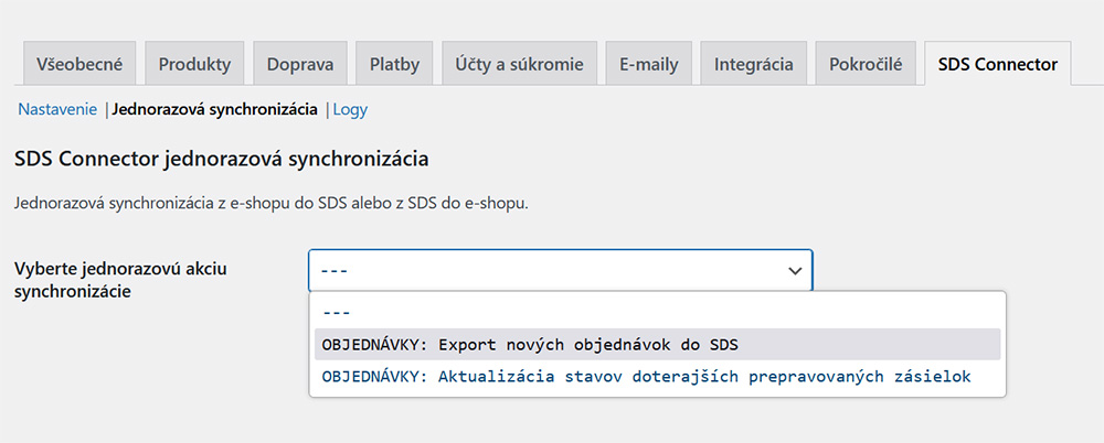 Rozsah synchronizácie zabezpečený pluginom WooCommerce SDS Connector